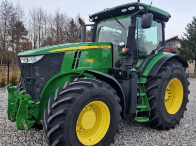 Tractor se encuentra en Polonia. John Deere 7230 R del 2014, 6.147 horas, 260 CV, Auto Power, suspension, clima, tripuntal, instalacion GPS, Isobus etc. Precio en Polonia.