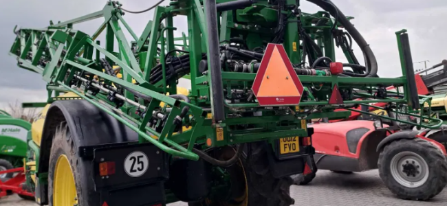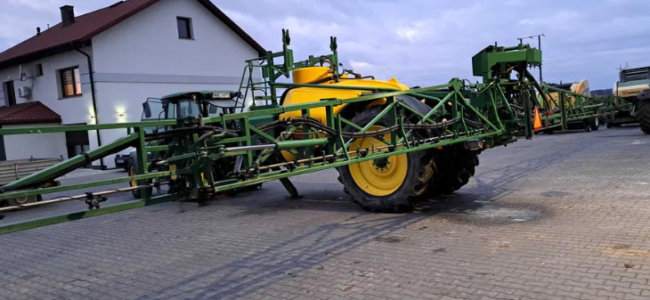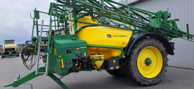 La maquina se encuentra en Polonia. Sulfatadora John Deere M 944i del 2018, 4.400l, eje direccional, suspension, Isobus, enganche K80, ancho 24m etc. Precio en Polonia.