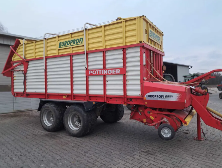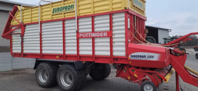 La maquina se encuentra en Polonia. Remolque autocargador Pottinger Europrofi 5000 del 2009, eje direccional, rueda ancha 620×22,5 etc. Precio en Polonia.